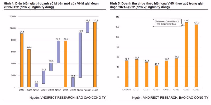 Cụ thể, trong báo cáo mới đây của CTCP Chứng khoán VNDirect, đơn vị này kỳ vọng doanh số ký bán mới của CTCP Vinhomes (mã CK: VHM) sẽ đạt 129.500 tỷ đồng (tăng 64% so với cùng kỳ năm 2021) và vượt nhẹ so với kế hoạch kí bán mới của công ty.