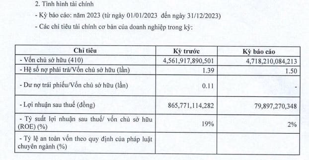 Kết thúc năm 2023, vốn chủ sở hữu của Vissai Ninh Bình ở mức 4.718 tỷ đồng. Hệ số nợ phải trả/vốn chủ sở hữu là 1,5, tương ứng khoản nợ phải trả hơn 7.077 tỷ đồng. Đáng chú ý, doanh nghiệp này đã “sạch” nợ trái phiếu.