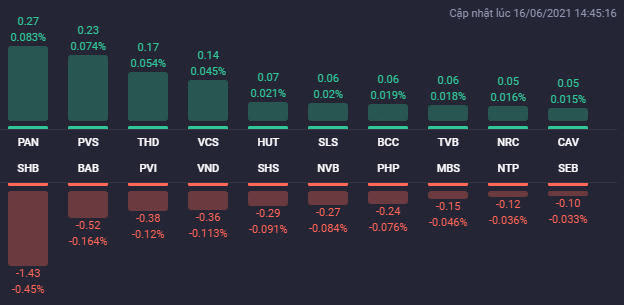 Kết thúc phiên giao dịch, VN-Index giảm 10,84 điểm (-0,79%) xuống 1.356,52 điểm. Toàn sàn có 176 mã tăng, 222 mã giảm và 43 mã đứng giá. HNX-Index giảm 4,64 điểm (-1,46%) xuống 313,65 điểm. Toàn sàn có 86 mã tăng, 115 mã giảm và 168 mã đứng giá. UPCoM-Index giảm 0,05 điểm (-0,06%) xuống 88,82 điểm.