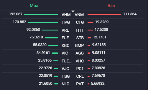 VRE, KBC, VIC và NLG là các cổ phiếu bất động sản nằm trong danh sách 10 mã được mua ròng mạnh. Trong đó, VRE được mua ròng 92 tỷ đồng, KBC đứng sau với 54 tỷ đồng. VIC và NLG được mua ròng lần lượt 35 tỷ đồng và 22 tỷ đồng. Chiều ngược lại, AGG và CRE là 2 mã bất động sản lọt vào top 10 bán ròng của khối ngoại nhưng giá trị chỉ lần lượt đạt 9 tỷ đồng và 7,7 tỷ đồng.