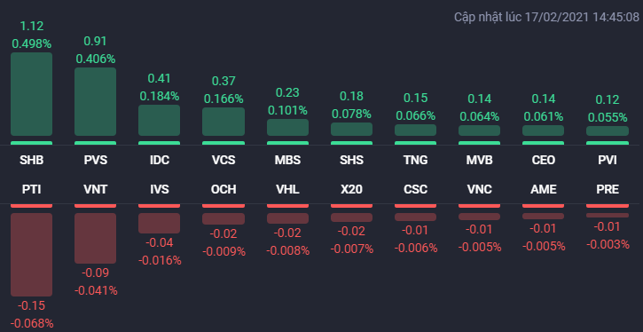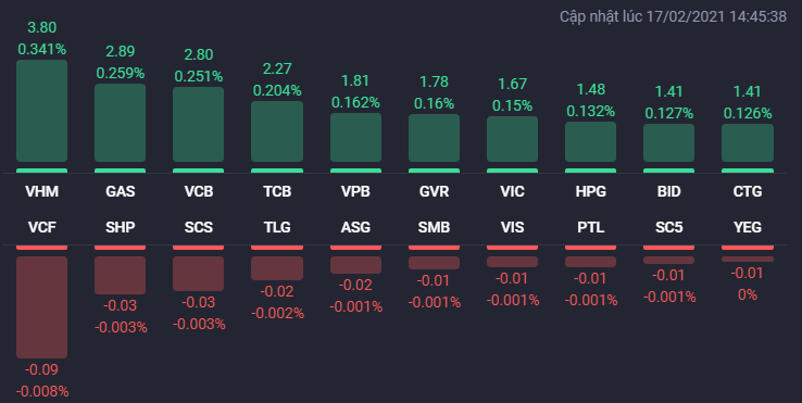 Tâm điểm của thị trường phiên 17/2 là nhóm cổ phiếu dầu khí và ngân hàng khi đây là 2 nhóm tạo động lực và hút dòng tiền tốt. Bên cạnh đó, nhóm cổ phiếu bất động sản cũng gây chú ý khi đây được cho là nhóm nhạy cảm với biến động của thị trường chung.