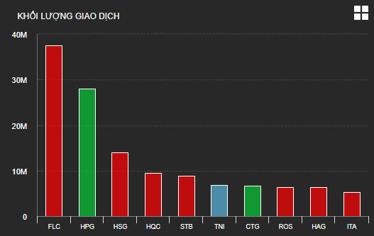 Tâm điểm của thị trường trong phiên giao dịch hôm nay là cổ phiếu HPG. Cổ phiếu này trong phiên có thời điểm nhận được lực cầu rất lớn và leo lên đến 28.900 đồng/cp, tương ứng tăng 4,7%, dù vậy lực bán cũng tăng dần cuối phiên khiến HPG kết thúc với mức tăng khiêm tốn hơn là 2,7% lên 28.350 đồng/cp. Khối lượng khớp lệnh của HPG vọt lên đến hơn 28 triệu cổ phiếu.