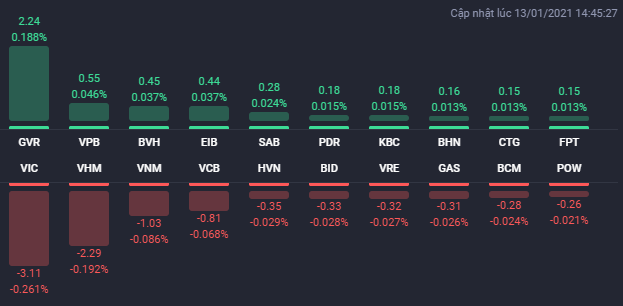 Ở chiều ngược lại, các cổ phiếu như GVR, BVH, VPB, SHB, FPT, SAB, VIB… vẫn giao dịch theo chiều hướng tích cực và góp phần giữ được sắc xanh của HNX-Index và UPCoM-Index trong khi kìm hãm lại đà giảm của VN-Index.