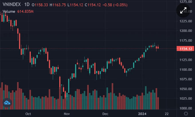 Kết phiên 15/1, VN-Index đóng cửa tăng 7,11 điểm tương đương +0,58% so với tham chiếu. Thanh khoản sàn HoSE phiên chiều tăng thêm tới 1.640 tỷ đồng.
