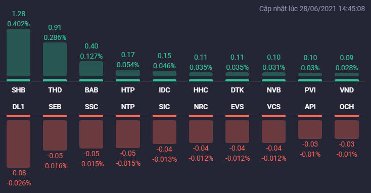 Thị trường chứng khoán Việt Nam khởi đầu tuần mới theo cách tích cực. Thị trường mở cửa phiên giao dịch ngày 28/6 với sắc xanh áp đảo ở nhóm vốn hóa lớn, các chỉ số vì vậy cũng đồng loạt tăng điểm. Giao dịch có phần giằng co ở trên mốc tham chiếu ở nửa đầu của phiên sáng. Trong khoảng thời gian còn lại, sự hưng phấn đã xuất hiện và nhiều cổ phiếu trụ cột bứt phá mạnh, chính điều này giúp nới rộng đà tăng của VN-Index và HNX-Index.