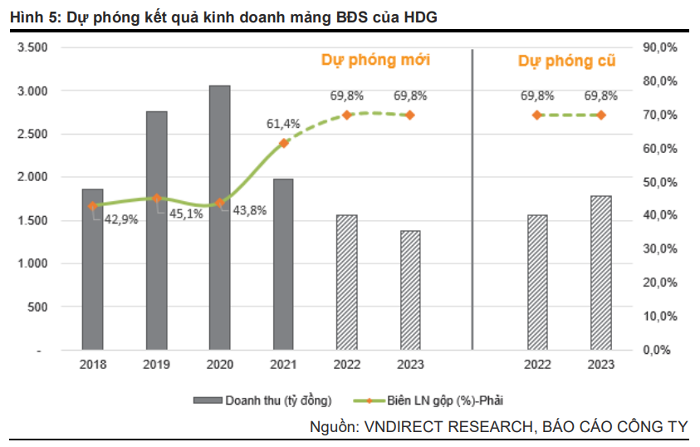 Song, biên lợi nhuận gộp mảng bất động sản năm 2022 - 2023 được kỳ vọng sẽ tăng 8,4 điểm % so với năm 2021 nhờ dự án Charm Villas có biên lợi nhuận gộp cao hơn 17,9 điểm % so với dự án Hado Centrosa (đã được bàn giao hết từ nửa đầu năm 2021).