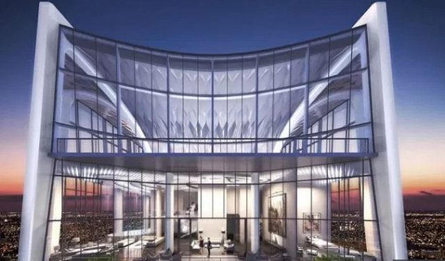 Tòa tháp 62 tầng cao hơn 215 mét và có sân bay trực thăng riêng, tầm nhìn ra đại dương và cửa sổ bằng kính từ sàn đến trần, vừa mới được hoàn thành vào đầu tháng 7.