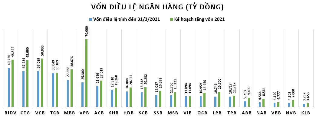 Tại Techcombank tính đến cuối năm 2020, vốn điều lệ dừng ở mức 35.000 tỷ và không có kế hoạch tăng mạnh vốn điều lệ trong năm 2021. Do đó, MB sẽ tạm vượt Vietcombank, Agribank và Techcombank về vốn điều lệ trong thời gian tới.