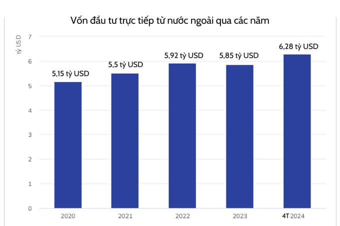 Vốn FDI 4 tháng đầu năm cao nhất 5 năm qua