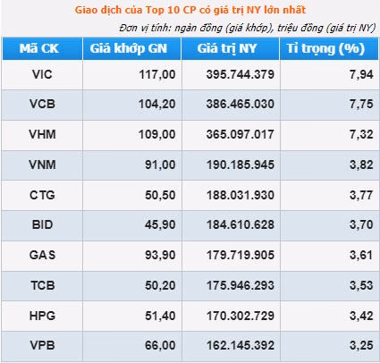 Từ đầu năm 2021 đến nay, VCB chỉ tăng khoảng 4% còn VHM tăng tới gần 26%. Cặp công ty mẹ - con Vingroup (Mã: VIC) và Vinhomes hiện nay là hai doanh nghiệp có giá trị niêm yết lớn nhất HOSE, tổng vốn hóa khoảng 34 tỷ USD. Theo sau là hai đại gia ngân hàng Vietcombank và VietinBank (Mã: CTG). Trong top 10 còn có ba nhà băng khác là Techcombank (Mã:TCB), BIDV (Mã: BID) và VPBank (Mã: VPB). Khoảng cách giữa ba mã cổ phiếu đứng đầu với top sau là khá lớn.