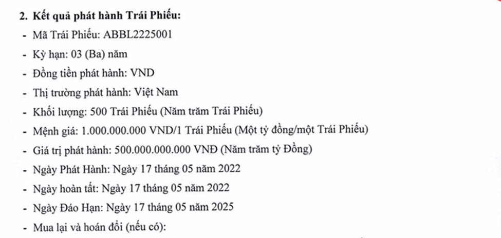 Gần đây nhất là ngày 17/5 ABBank đã phát hành lô trái phiếu trị giá 500 tỷ đồng có thời hạn kéo dài 3 năm, hoành thành vào ngày 17/5. Đơn vị mua lại trái phiếu và mục đích sử dụng lô trái phiếu này vẫn đang là một “ẩn số”. Theo tìm hiểu, đây cũng là đợt phát hành trái phiếu đầu tiên của ABBank trong năm 2022. Theo báo cáo tài chính năm 2021, Ngân hàng An Bình "xuất sắc" trong việc phát hành trái phiếu bao nhiêu thì cũng đi đầu tư trái phiếu nhiều bấy nhiêu. Tại thời điểm cuối năm 2021, An Bình Bank đầu tư gần 2.000 tỷ đồng trái phiếu chính phủ, đầu tư hơn 4.942 tỷ đồng trái phiếu do các tổ chức tín dụng khác phát hành và đầu tư hơn 8.400 tỷ đồng trái phiếu doanh nghiệp.