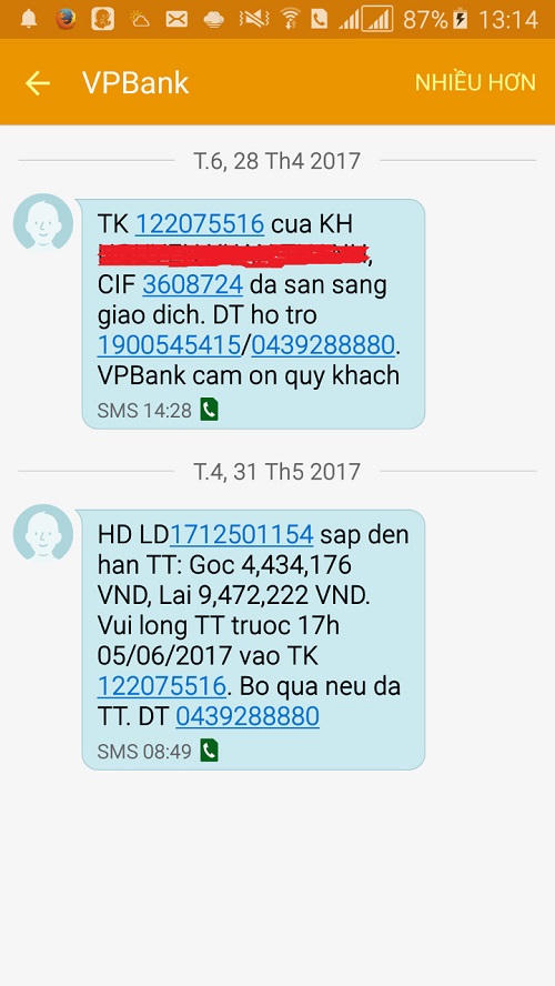 đình anh C. được VPBank gửi đến qua tin nhắn.