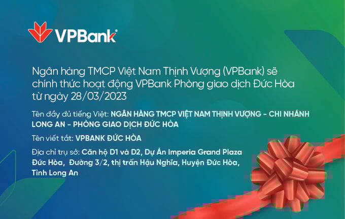 VPBank dự kiến mở PGD Đức Hòa – Chi Nhánh Long An từ ngày 28/3/2024