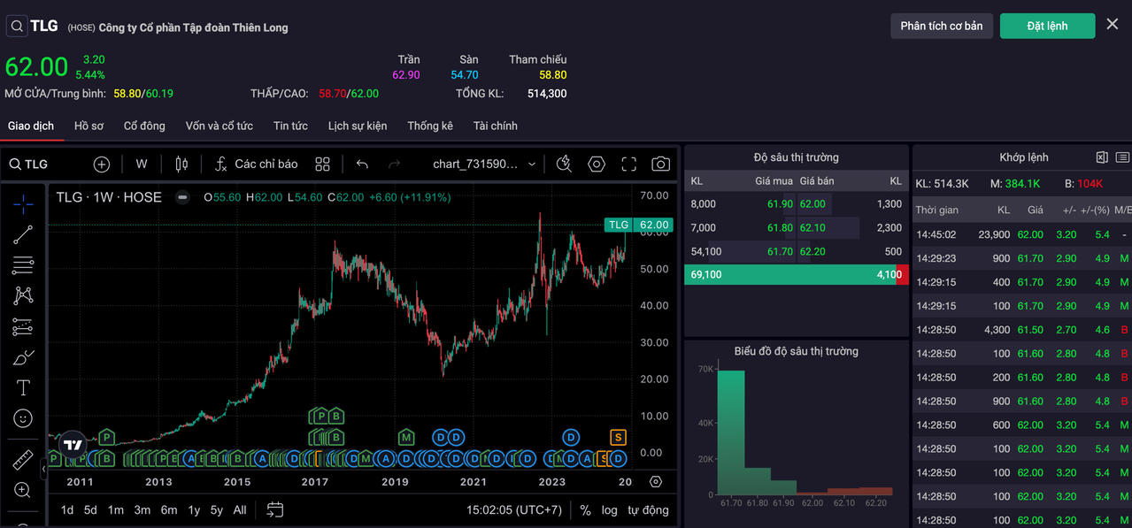 Với vận động hiện tại, cổ phiếu TLG hoàn toàn sáng cửa để vượt đỉnh lịch sử ghi nhận ngày 5/9/2022, tương ứng mức giá 63.120 đồng/cp.
