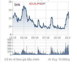 Trong thời gian công ty đăng ký mua, giá cổ phiếu SHN dao động trong khoảng từ 13.200 đồng lên 13.600 đồng/cổ phiếu. Từ ngày 15/12 – 19/12/2016,