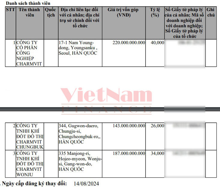 Đến tháng 8/2020, tỷ lệ sở hữu của các pháp nhân nêu trên có sự thay đổi. Lúc này, Công ty cổ phần Công nghiệp Charmvit vẫn sở hữu 40% cổ phần; nhưng Công ty TNHH Khí đốt đô thị Charmvit Wonju giảm tỷ lệ sở hữu xuống còn 34% và 26% cổ phần còn lại thuộc về Công ty TNHH Khí đốt đô thị Charmvit Chungbuk.
