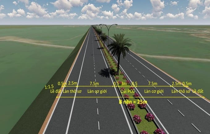 Theo quy hoạch, tuyến này là đường cấp 1 đồng bằng với 6 làn xe, trong đó bề rộng mặt đường xe cơ giới là 15m, làn xe thô sơ rộng 5m. Riêng đoạn qua khu trung tâm xã Dân Tiến sẽ có mặt cắt ngang rộng 33m, trong đó mặt đường xe cơ giới rộng 15m, làn xe thô sơ rộng 5m, ngoài ra có 7m dự trữ để làm cầu vượt cao tốc đi trên cao.