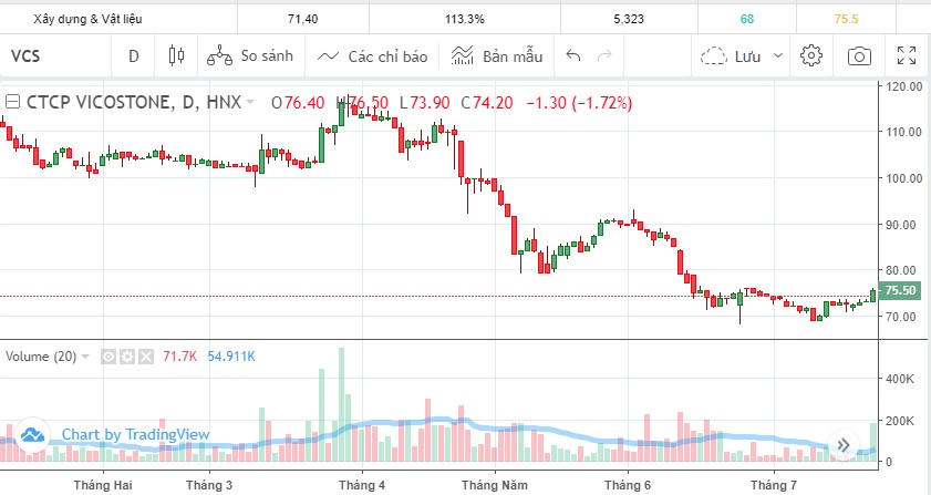 Theo đó, mã cổ phiếu VCS của CTCP Vicostone do đại gia 58 tuổi người Nam Định, Hồ Xuân Năng làm Chủ tịch ghi nhận mức tăng mạnh 2.400 đồng/cổ phiếu tương đương mức tăng 3,28%.