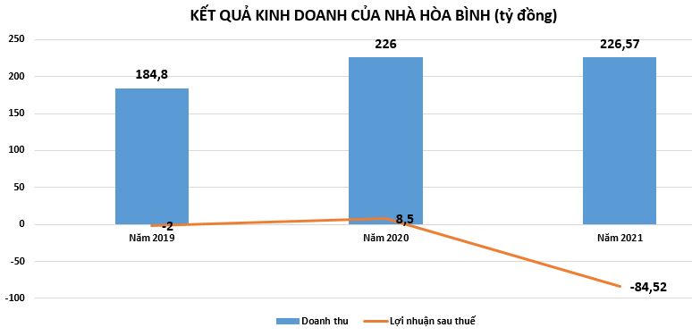 Theo báo cáo thường niên năm 2021, Nhà Hòa Bình có vốn điều lệ 450 tỷ đồng. Kết quả kinh doanh của công ty này liên tục thua lỗ. Cụ thể, năm 2021 doanh thu đạt 226,5 tỷ đồng song lỗ sau thuế hơn 84,5 tỷ đồng. Trong 9 tháng đầu năm 2022, Nhà Hòa Bình mang về 166 tỷ doanh thu những cũng lỗ sau thuế 26,5 tỷ đồng.