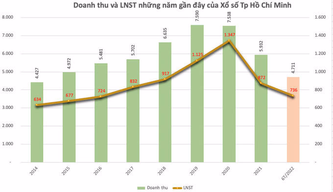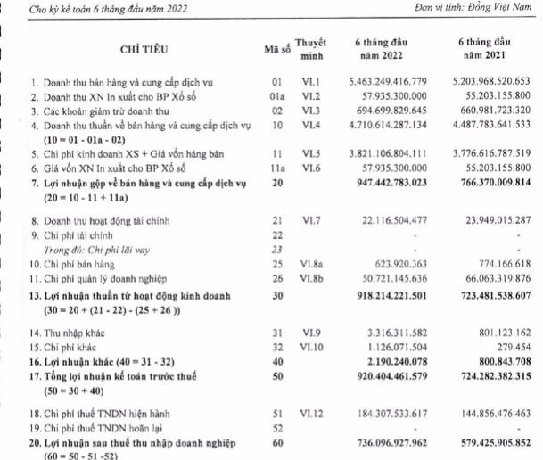 Trừ các chi phí khác, 6 tháng đầu năm 2022 Xổ số kiến thiết Tp Hồ Chí Minh lãi sau thuế 736 tỷ đồng, tăng 27% so với cùng kỳ năm 2021.