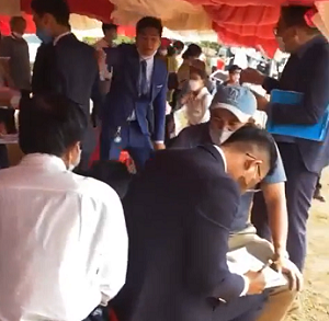 Hình ảnh trong clip dài khoảng 4 phút được chỉ sẻ ghi lại nhóm người môi giới bất động sản ở một bãi đất trống, bên cạnh con đường có hàng chục chiếc ô tô đang đậu. Nhiều nhân viên của công ty này mặc vest cầm cặp da và sổ đỏ (giấy chứng nhận quyền sử dụng đất) chạy đi chạy lại liên tục, thông báo chốt cọc với một MC.