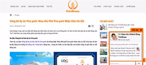 Theo Báo Đất Việt/ Link: https://baodatviet.vn/kinh-te/bat-dong-san/xu-phat-ldg-vi-xay-dung-khong-phep-du-an-viva-park-3421033/