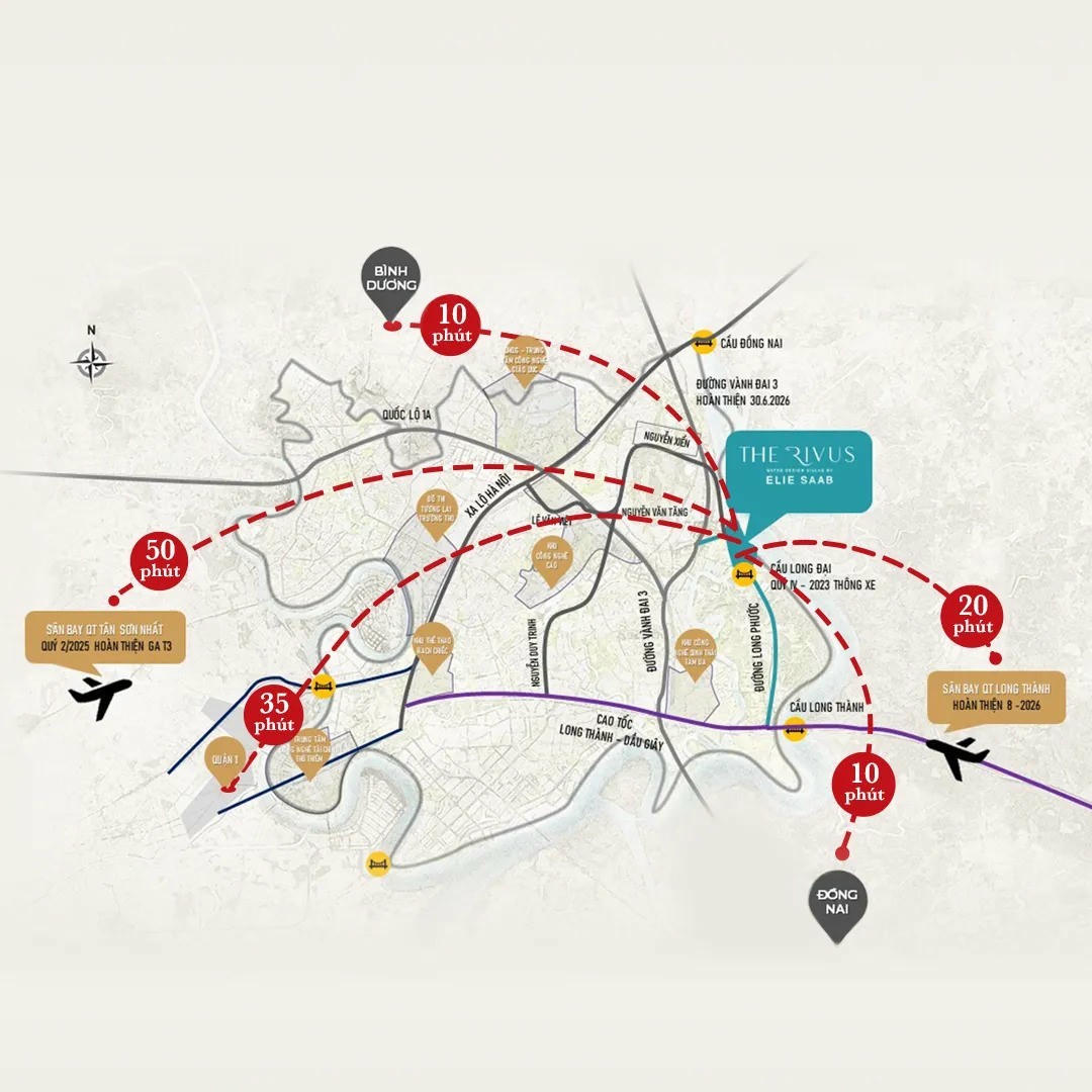 Xa hơn, The Rivus mang đến lợi thế lâu dài khi nằm tại điểm huyết mạch của các dự án trọng điểm đang nhận đầu tư “khủng” như: Sân bay Long Thành, đường Vành Đai 3, cao tốc Vũng Tàu - Biên Hòa... Vì thế, không chỉ có vị trí mang đến tài lộc vượng khí, đảm bảo được sự riêng tư cần thiết, The Rivus hứa hẹn khiến những chủ nhân tương lai hài lòng về giá trị tích sản vượt trội.