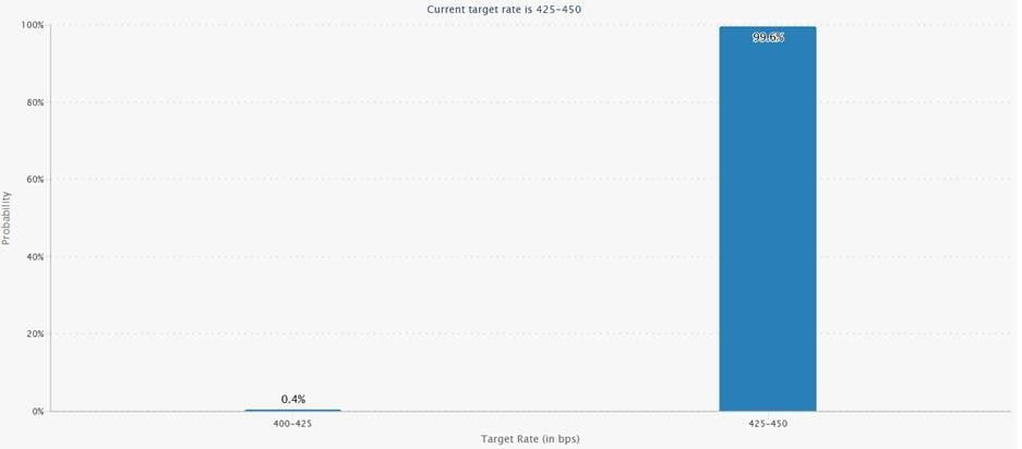 Liên quan một sự kiện quan trọng là cuộc họp của Cục Dự trữ Liên bang Mỹ (Fed) ngày 18/6 tới đây, vị chuyên gia cho hay, thị trường vẫn kỳ vọng 99,6% rằng Fed sẽ vẫn giữ mức lãi suất hiện nay và điều quan trọng là cần quan sát xem Chủ tịch Fed sẽ nhận định như thế nào về tình hình kinh tế hiện nay.