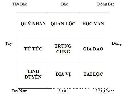 Chú ý: Cung tài lộc nên bố trí phòng ngủ, phòng làm việc, cửa hàng, tuyệt đối không làm nơi chứa đồ, toa lét.
